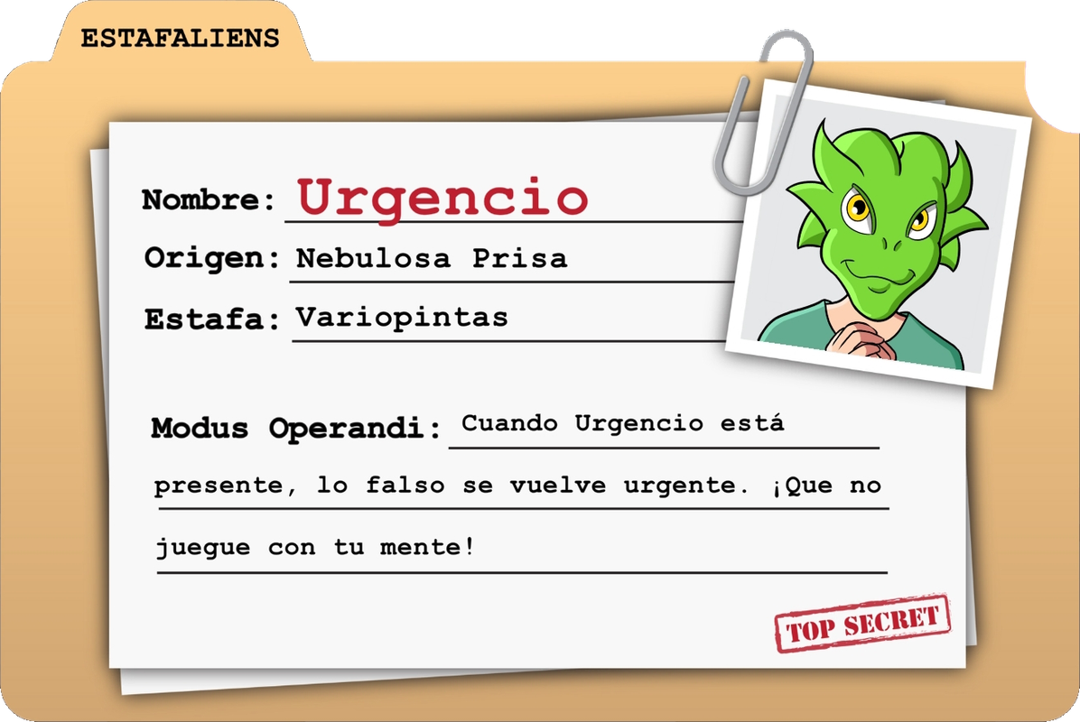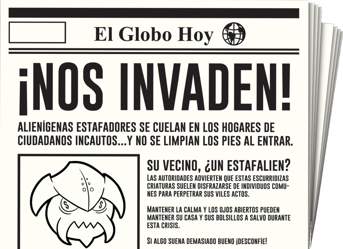 ¡Los Estafaliens nos atacan! Una legión de seres extraterrestres especializados en el fraude y el engaño ha tomado al planeta Tierra por sorpresa, disfrazándose como humanos y practicando las más viles estafas. Como agente especial de la Agencia Virtual de Identificación de Vulnerabilidades Alienígenas Terrestre: A.V.I.V.A.T.E., eres la última línea de defensa contra estos escurridizos seres del inseguro espacio exterior. Resuelve minijuegos a lo largo de 4 niveles en el modo historia, mientras te enfrentas a los alienígenas más desopilantes y aprendes a detectar y evitar todo tipo de estafas electrónicas reales. Demuestra tu valía como agente, y tendrás la oportunidad de convertirte en una leyenda de la agencia enfrentando el Desafío A.V.I.V.A.T.E.. ¿Qué esperas, recluta? ¡El planeta te necesita! - Utiliza tu criterio para analizar y descubrir estafas resolviendo variedad de minijuegos. |